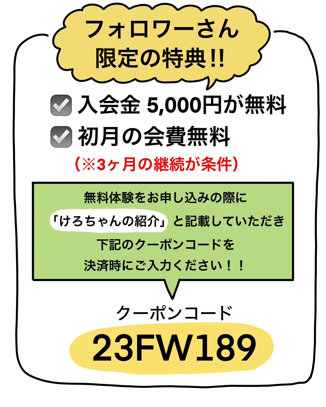 私「けろちゃんからの紹介」で入会していただくと、以下の特典が得られます。